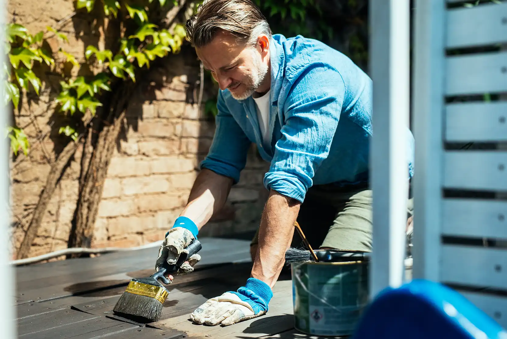 „Gut vorbereitet ist halb geschützt“, empfiehlt Borchard. Bevor Farbe, Öl, Wachs oder Lasur aufgetragen werden, muss das Holz sauber, trocken und glatt sein. Alte Altbeschichtungen oder Verwitterungen abschleifen, ggf. auch Nut/ Feder-Verbindungen säubern. Danach eine passende Grundierung wählen – etwa Holzgrund oder Grundieröl mit Bläueschutz. Diese Schritte helfen, dass der Schutz tief einzieht und lange hält.